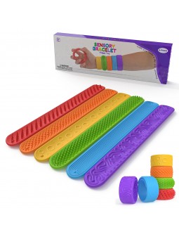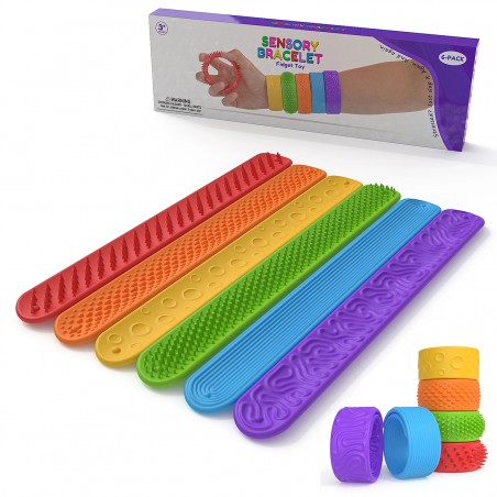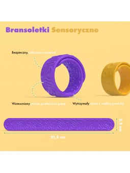 ✅ 6 bransoletek sensorycznych w różnych kolorach: czerwony, pomarańczowy, żółty, zielony, niebieski, fioletowy